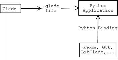 Aşağıdaki garfik genel mekanizmayı göstermektedir. Python bağlantısının nasıl uygulandığını anlamak için bazen PYTHONPATH 'te yerleşmiş Gtk, Gnome ve LibGlade Python birimlerine bakmak ve onları C Gtk/Gnome geliştirici dökümanlarla karşılaştırmak gerekir.